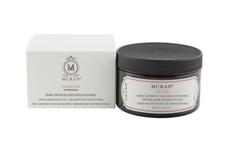 For a gentle treatment, before cleansing the scalp, apply the cream to the contour areas and/or to those affected by itching and redness, using the natural Muràn mushroom from the Mediterranean. Leave on for a few minutes; then proceed with purification with serenity 01-04.